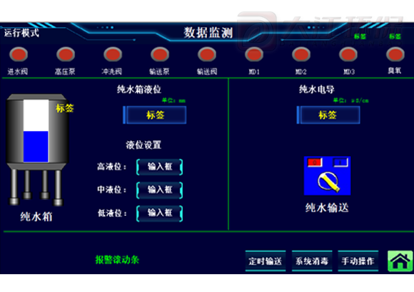 3、在线监测原水、纯水水质,具有纯水水质超标报警功;具有完善的无水、压力、电源保护多种安全自锁功能。 故障的自检解决帮助功能、多种应急方案以保证设备的运行。