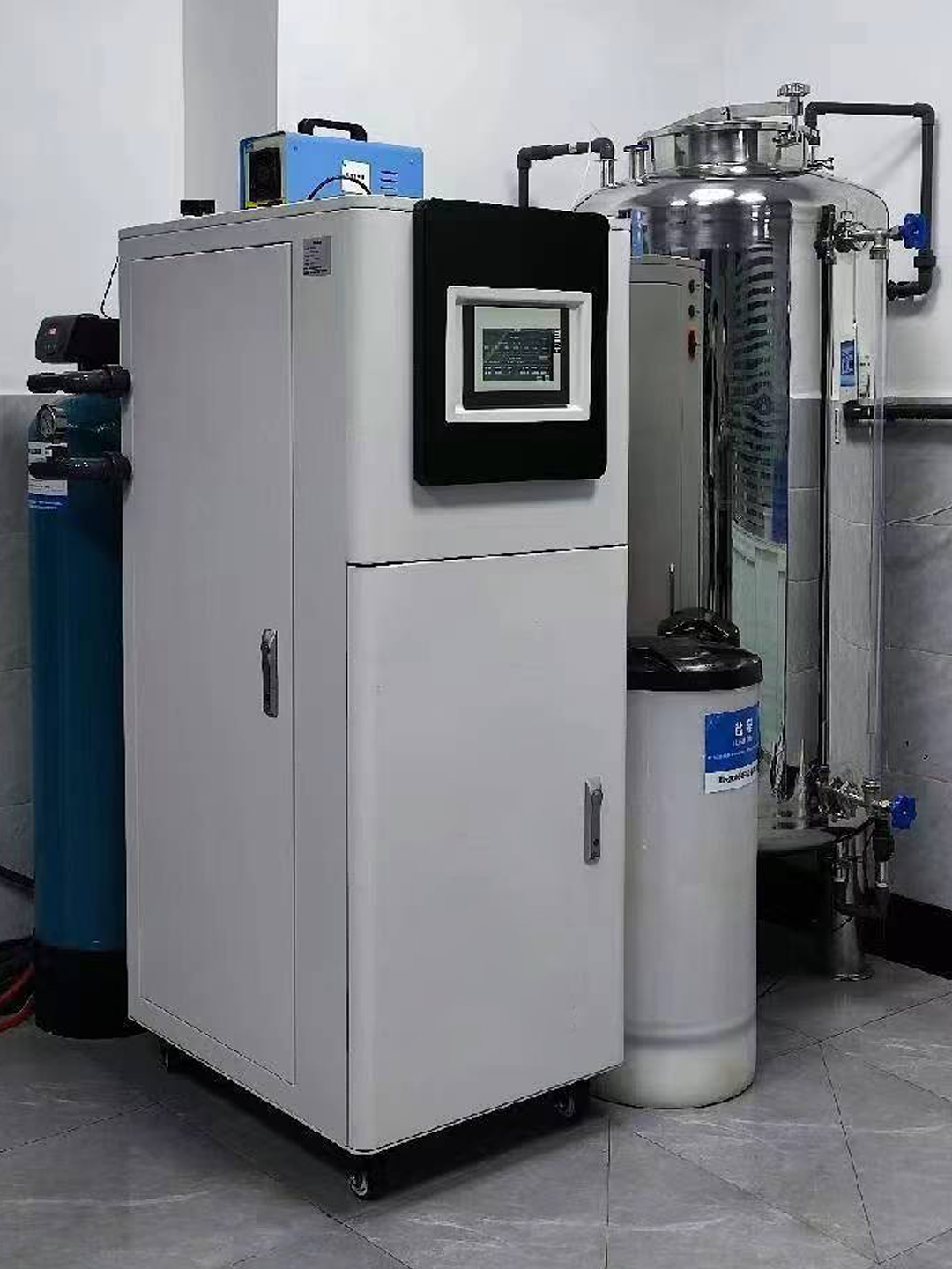 b)控制方式:微电脑控制,全自动运行;可选触摸屏操作模式,压力、流量、水质参数实时监测;设备控制系统加载具有软件著作权登记注册的超纯水设备控制程序(YH-water)V1.0。
